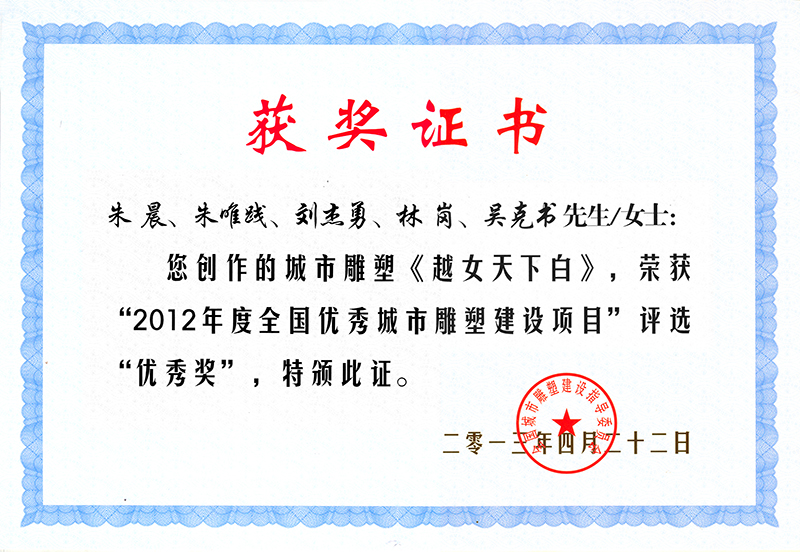 《越女天下白》獲“2012年度全國城市雕塑建設項目”優(yōu)秀作品獎