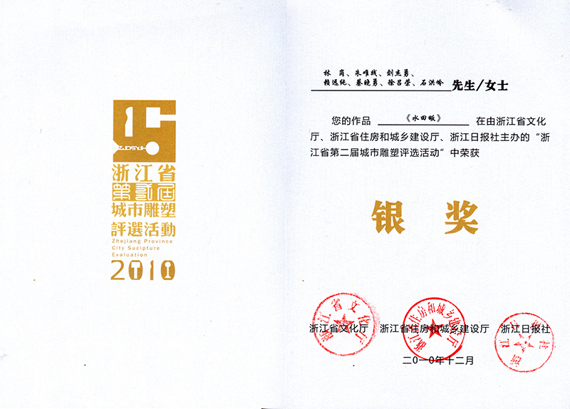 《水田畈》“2010年第二屆浙江省城市雕塑評(píng)選活動(dòng)”銀獎(jiǎng)