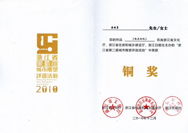 《杭大記憶》“2010年第二屆浙江省城市雕塑評(píng)選活動(dòng)”銅獎(jiǎng)