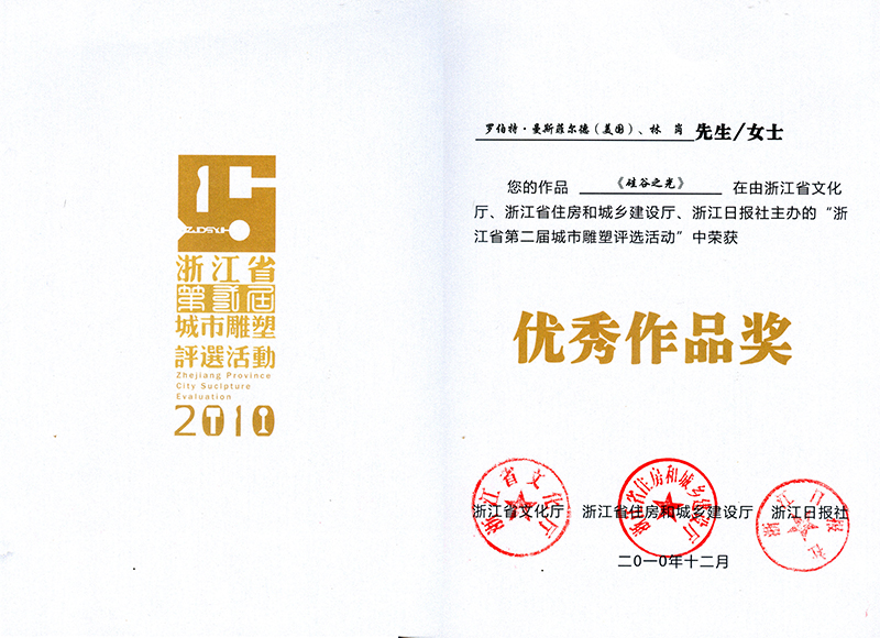 《硅谷之光》“2010年第二屆浙江省城市雕塑評選活動”優(yōu)秀作品獎