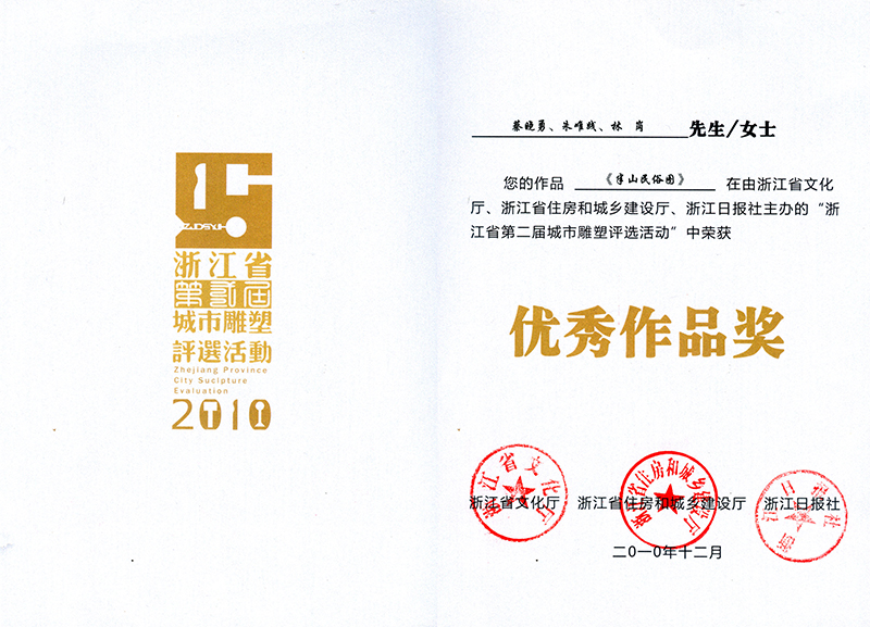 《半山民俗園》“2010年第二屆浙江省城市雕塑評(píng)選活動(dòng)”優(yōu)秀作品獎(jiǎng)